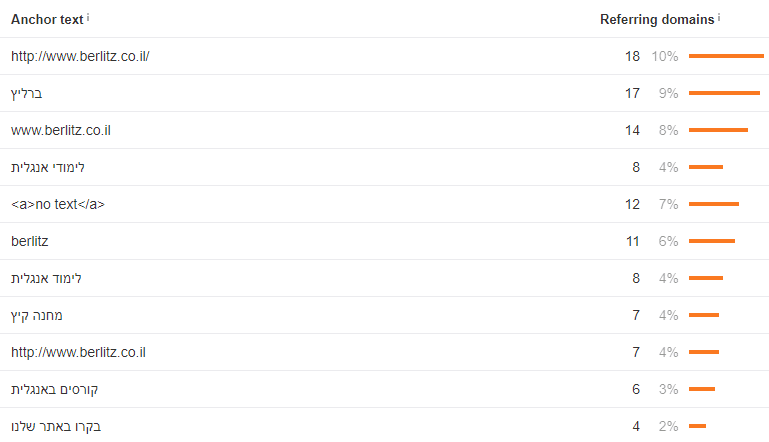 להלן דוגמה לאנקורים (טקסט העוגן) השונים של ברליץ ללימודי שפות: